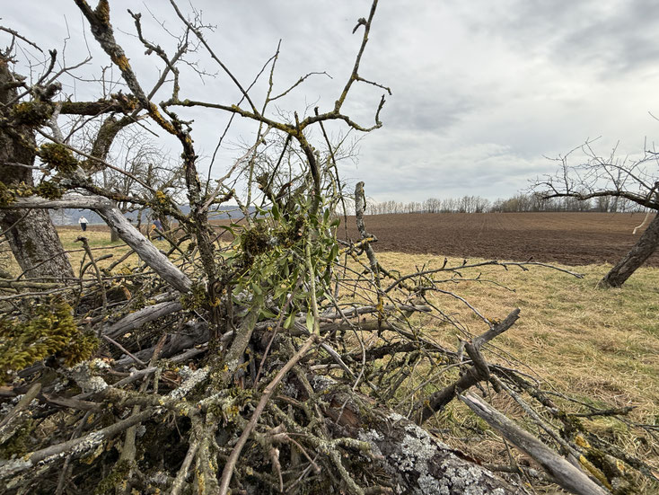 Die Bäume mit starkem Mistelbefall wurden stark zurückgenommen um eine Ausbreitung der Mistel zu reduzieren.