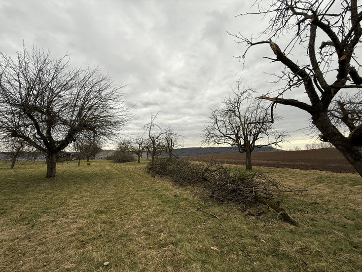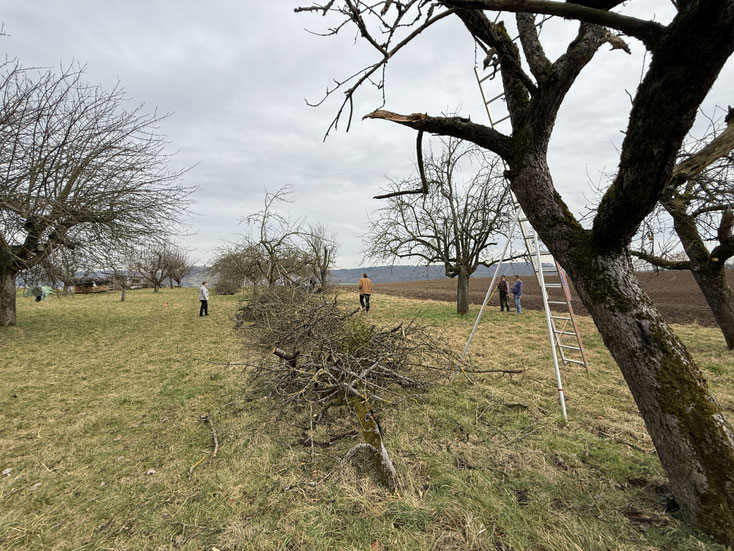 Gemeinschaftlich wurde eine Streuobstwiese in Großbottwar gepflegt, die einen Pflegerückstand aufweist aber dennoch erhaltenswert ist.